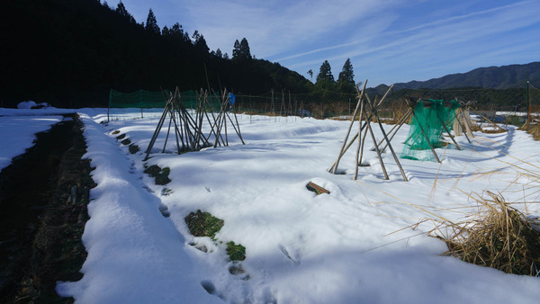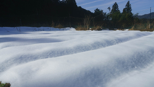 畑の作物は、雪の下で凍りついてるようで、