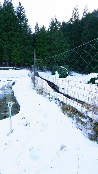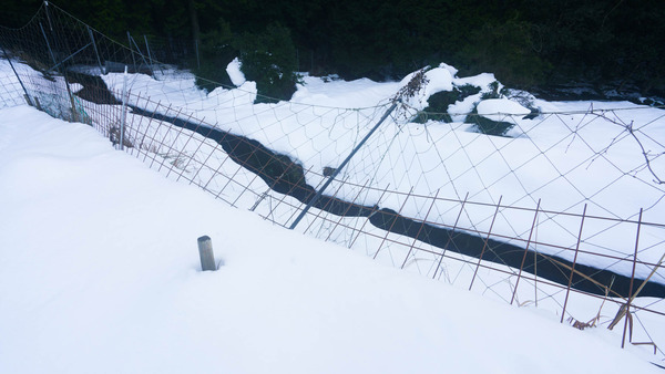 一部、動物柵も雪の重みに負けて倒れています。