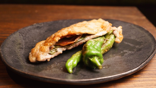 豚ロースにポケットを作って薄くたたき、ポケットに生ハムとセージを入れます。