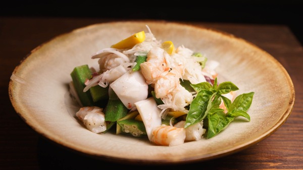 採りたての三度豆とオクラが、よく合います。