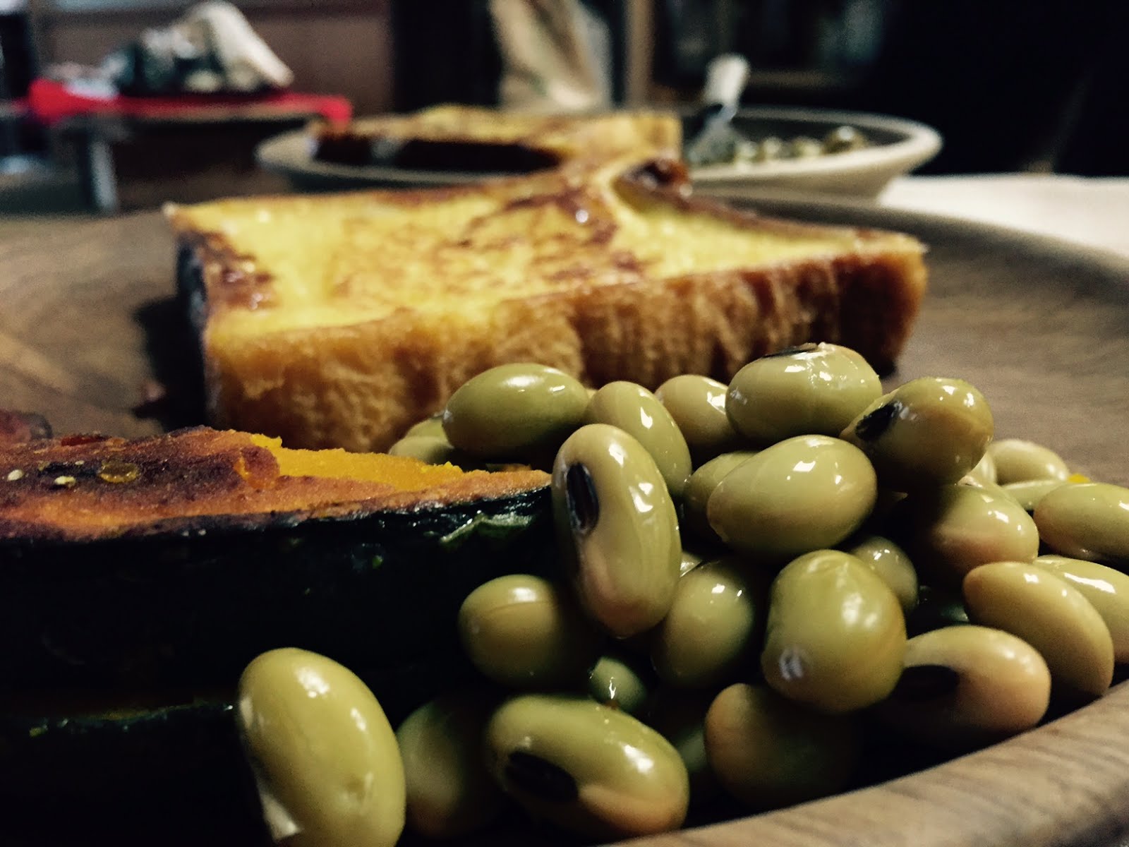 手前から、青大豆、カボチャ、モチドメさんがくれた蜂蜜のフレンチ・トースト。