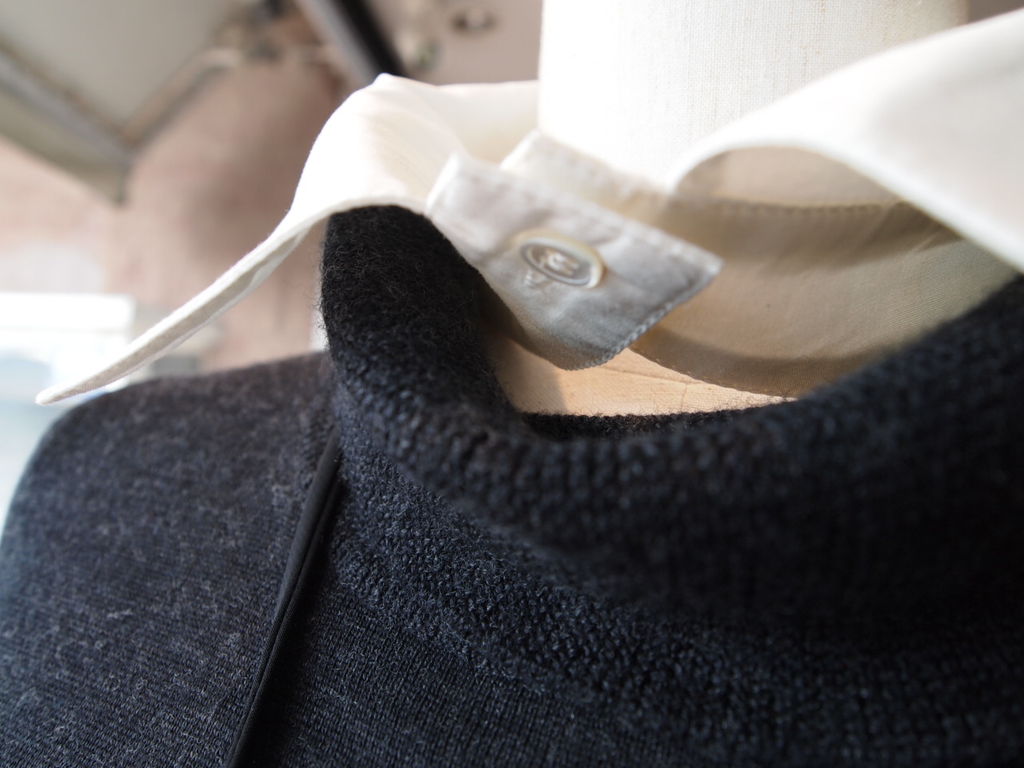 シャツカラーはアレンジしやすい仕立てになっています。