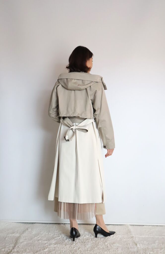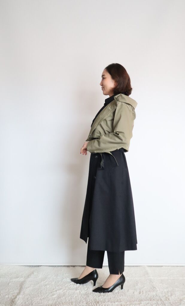 マニッシュなトレンチジレにショートジャケットの配色が大人可愛い~
