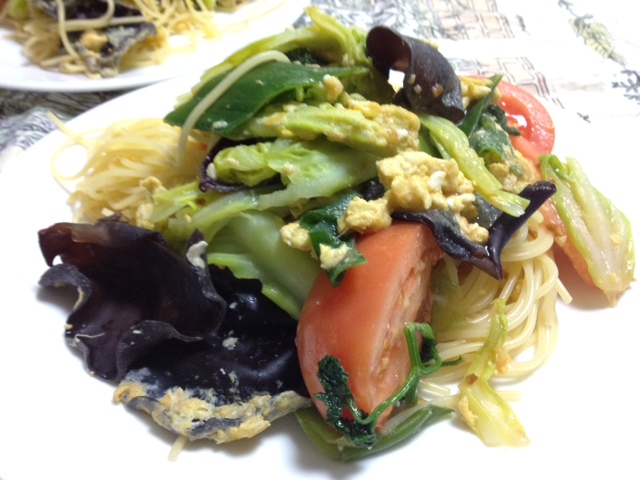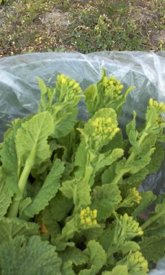 今日の収穫は細すぎて少し恥ずかしい大根と、終わりかけの菜花。煮物とお浸しサラダでいただきました♪