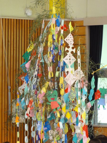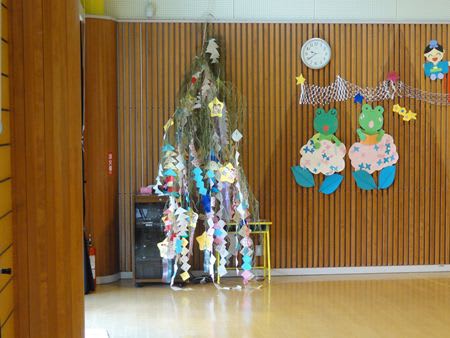 遊戯室には 笹飾りが飾ってありました。