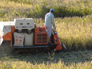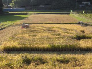 ファーマーズ辰巳の稲山さんに コンバインで刈りとっていただきました。